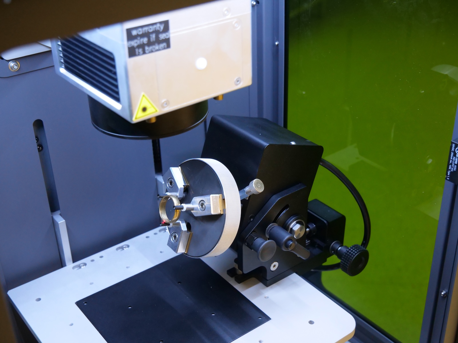 I smykkeindustrien er de fleste objekter sylindriske. Ved å legge til en roterende enhet til din LW2, kompletterer du tilbudet ditt innen smykkepersonalisering.