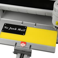 Maskinen leveres med programvaren Gravostyle på norsk. Med Gravostyle fletter du enkelt inn skiltdata fra f.eks. Excel og maskinen graverer først teksten og skjærer deretter ut skiltene med pen skråkant.
