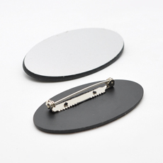 Jakkeskilt oval glossy sølv-sort 34×61 mm