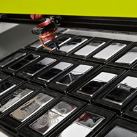 I motsetning til våre konkurrenter, har alle våre lasermerkere en intelligent autofokusfunksjon. Når du skal gravere en matrise med flere like gjenstander samtidig, der høyden på gjenstandene kan variere, vil våre lasermerkere om ønskelig beregne korrekt fokus på hvert enkelt objekt.